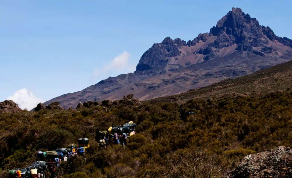 On day two the hike continues from Simba Camp through the rainforest before transitioning into the low alpine moorland zone where you will notice the vegetation change to shrubs and grasses. You will stop for lunch at Rongai Second Cave (3,450 meters), 6km from the First Cave Camp, before turning east to Kikelewa Camp (3,600 meters) for your overnight stay. Depending on your tour operator, eight day trekkers might stop at Rongai Second Caves for the night before proceeding to Kikelewa Camp.